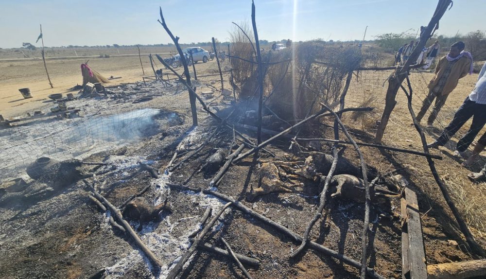 बीकानेर:चिमनी से लगी आग ने उजाड़ा आशियाना, 23 बकरियां व 5 भेड़ें जलीं, झोपड़ी-बाड़ा राख